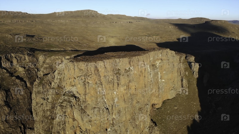 Отдаленное плато с пересеченной местностью, огромное высокогорное плато со скалистыми хребтами и открытыми горизонтами
