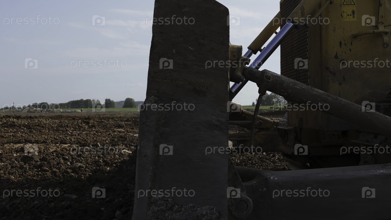 Бульдозер толкает грязь на строительной площадке