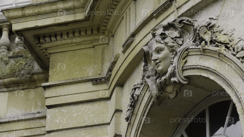 Скульптуры каменного лица женщины украшают окно французского замка