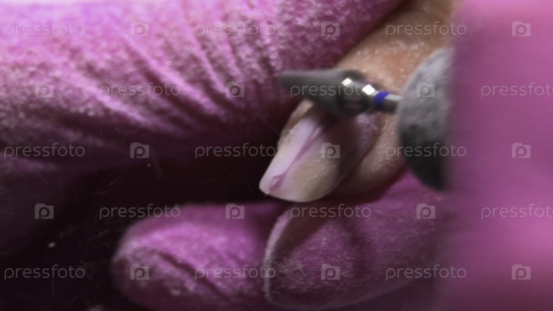 Процесс Closeup Buffing, техник тщательно гладит ногти с устойчивой хваткой и удаляет крошечные частицы