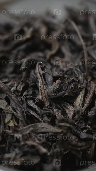 Этот крупный план показывает сложные детали сушеных листьев черного чая, которые идеально подходят для приготовления богатой ароматной чашки