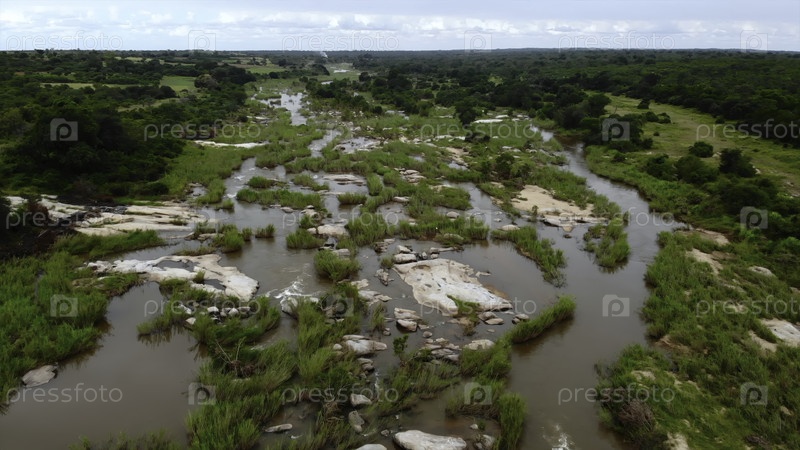 Дрон захватывает текущую речную среду, воздушные снимки демонстрируют речные каналы и особенности паводковой равнины