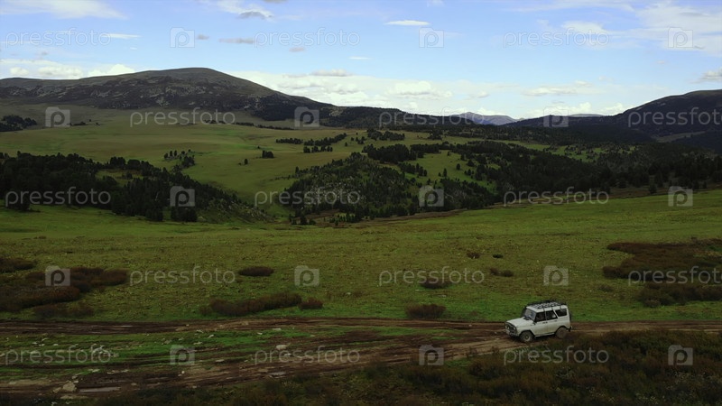Автомобиль внедорожник едет по горной грунтовой дороге.СМИ