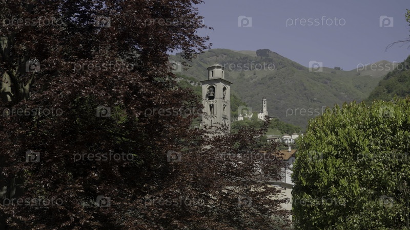 Колокольня Эсино ларио, выходящая из пышной зеленой листва