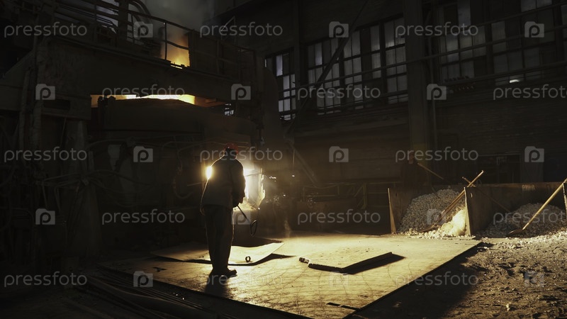 Промышленный рабочий наливает расплавленный металл на фабрике, демонстрируя мастерство и производственные процессы