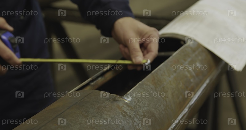 Высококвалифицированный мастер тщательно принимает точные измерения металла для изготовления, обеспечивая оптимальную точность