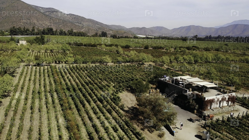 Вид с воздуха на живописный виноградник и винную фабрику