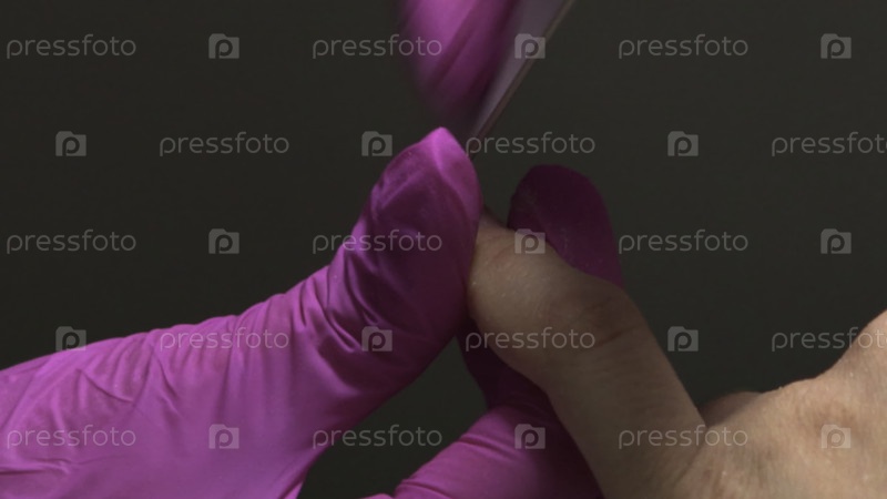 Клюзовый обрез кутикулы с помощью файла и мягкого давления, показывающий тщательную гигиену и уход за руками