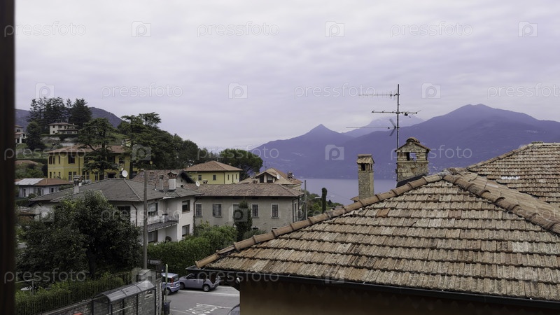 Вид из окна с видом на живописную итальянскую деревню и озеро Комо