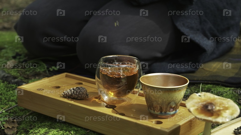Успокаивающее видео демонстрирует спокойные чаевые моменты, устроенную чашку на подносе, человека, выпивающего в природе, тихие сцены и две чашки, приглашающие к общению