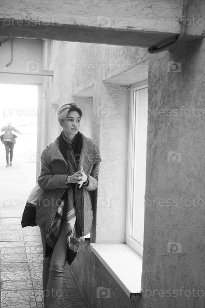 Молодая красивая женщина позирует снаружи в пальто