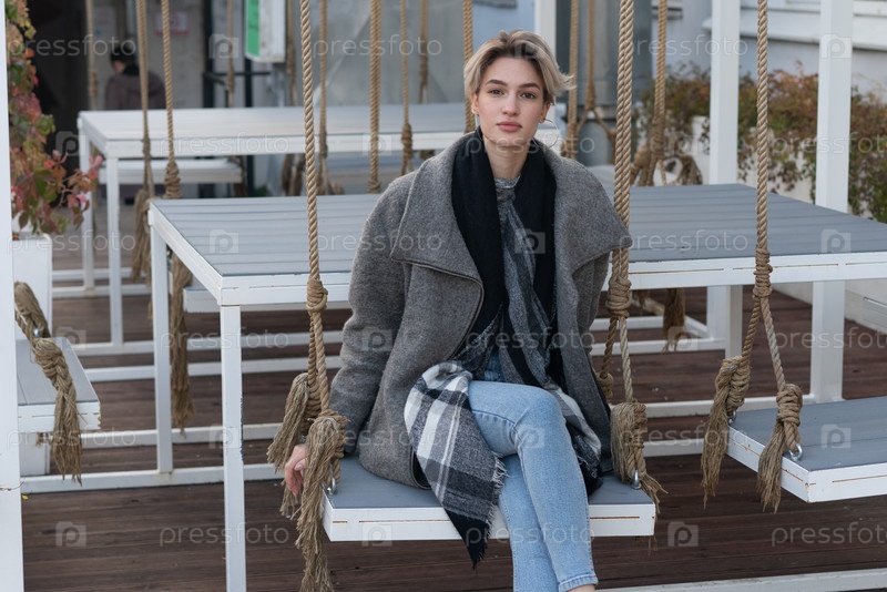 Молодая красивая женщина позирует снаружи в пальто