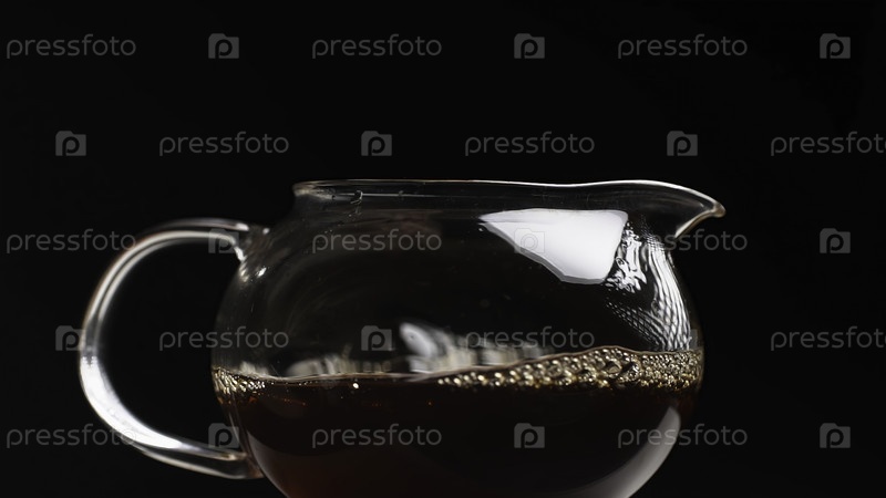 Художественный выстрел чая, залитый в стеклянную чайник, красиво подчеркивает его богатый цвет и текстуру