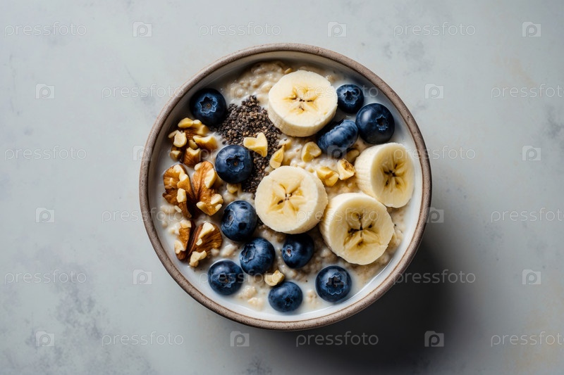 AI Generative Granola oatmeal с йогуртом, ягодами и фруктами, традиционный здоровый вегетарианский завтрак