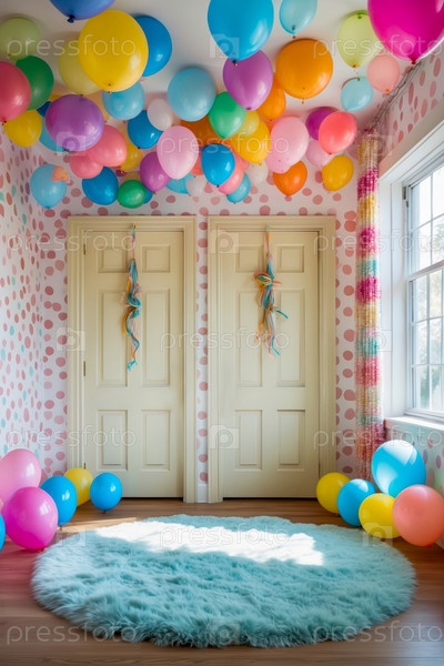 Современный дизайн уютного интерьера детской комнаты красочная, декоративная игровая комната в доме AI Generative