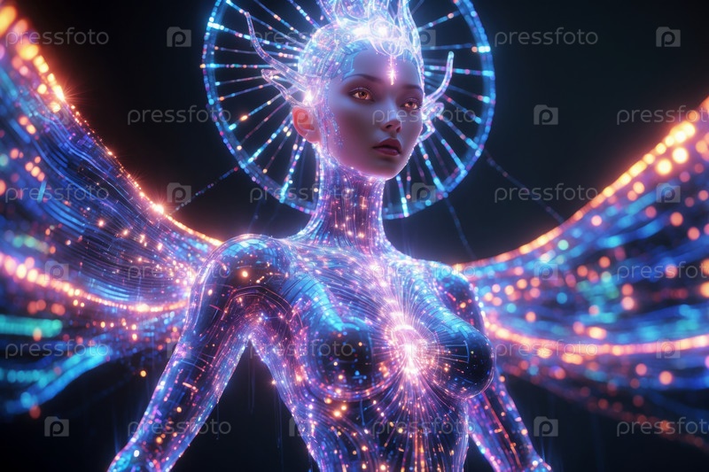 AI Generative Woman гуманоидная футуристическая космическая сущность, человек на будущем sci-fi tomorrow background
