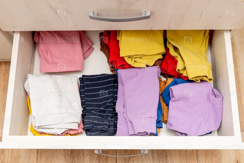 Открытая полка ящик гардероба, keeping storage by stacks of children clothes