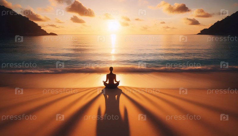 Практика заката солнца в океане, Ai generated image