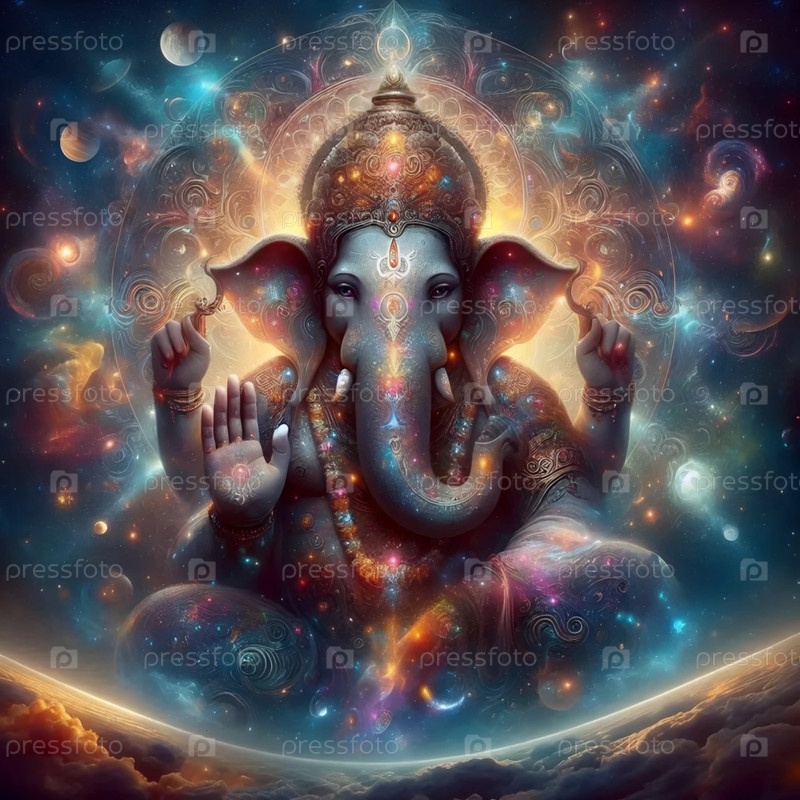 Господь Ганеша с галактиками, Ai generated image A
