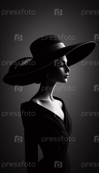Винтажный элегантный женский силуэт с художественным принтом, Ai generated image