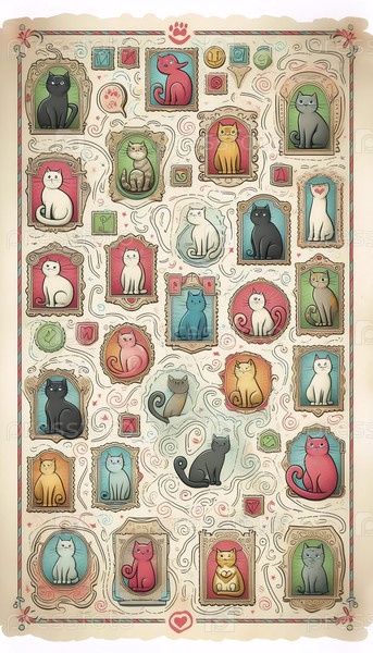 Причудливая иллюстрация кошек мира, Ai создала изображение