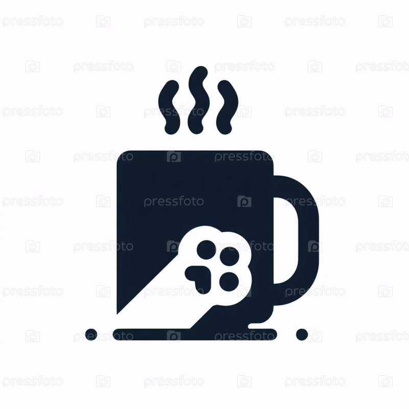 Минималистский кот и кофейная кружка Икона, Ai generated image