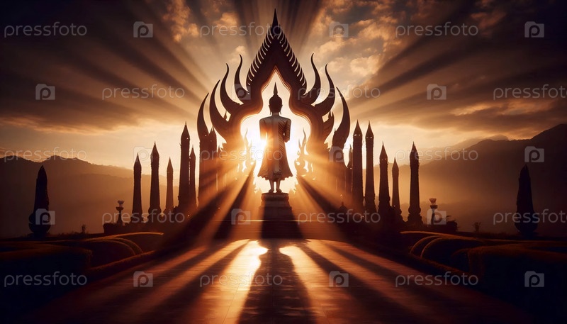 Лучи захода солнца Будды, Ai generated image