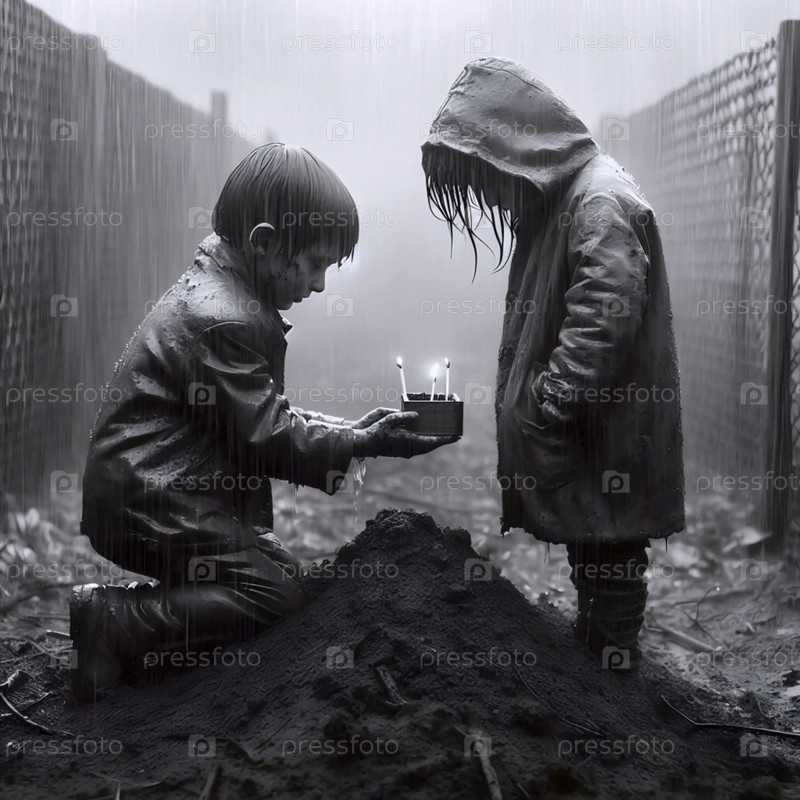 Два ребенка похоронили птицу в коробке с спичками, Ai generated image