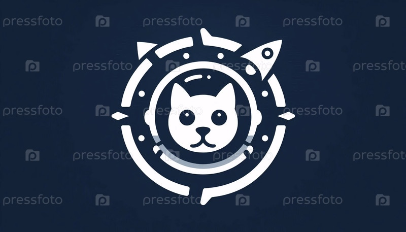 Минималистский геометрический кот логотип астронавта, Ai generated image