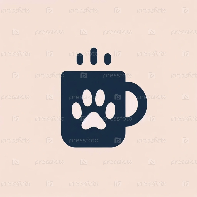 Минималистский кот и кофейная кружка Икона, Ai generated image