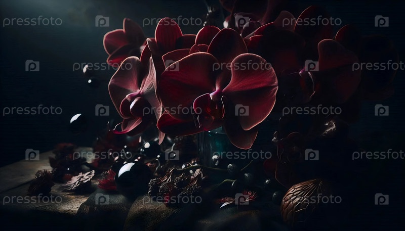 Черная орхидея в готическом стиле, Ai generated image