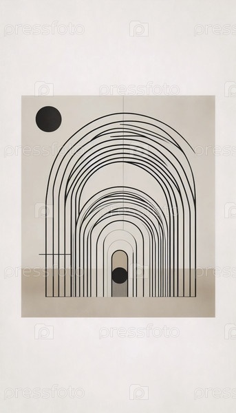 Геометрическое стеновое искусство в стиле бохо середины века, Ai generated image