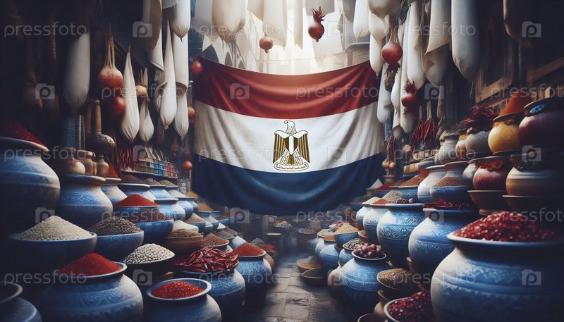 Египетский флаг в оживленном Каире Рыночная жизнь, Ai generated image
