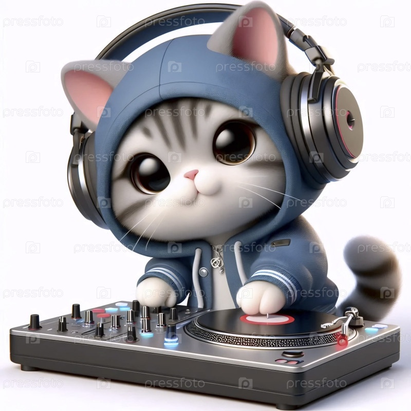 3D милый кот DJ стикер персонажа, Ai generated image A