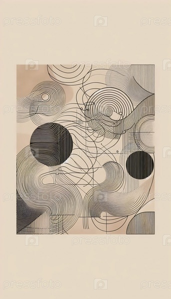 Геометрическое стеновое искусство в стиле бохо середины века, Ai generated image
