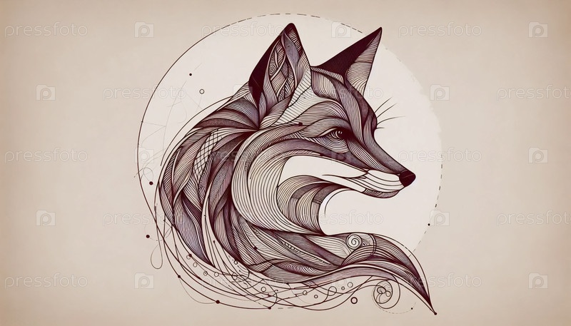 Стилизованный портрет линейного искусства лисы, Ai generated image