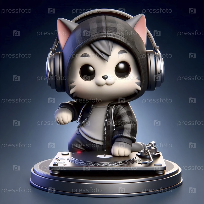 3D милый кот DJ стикер персонажа, Ai generated image A