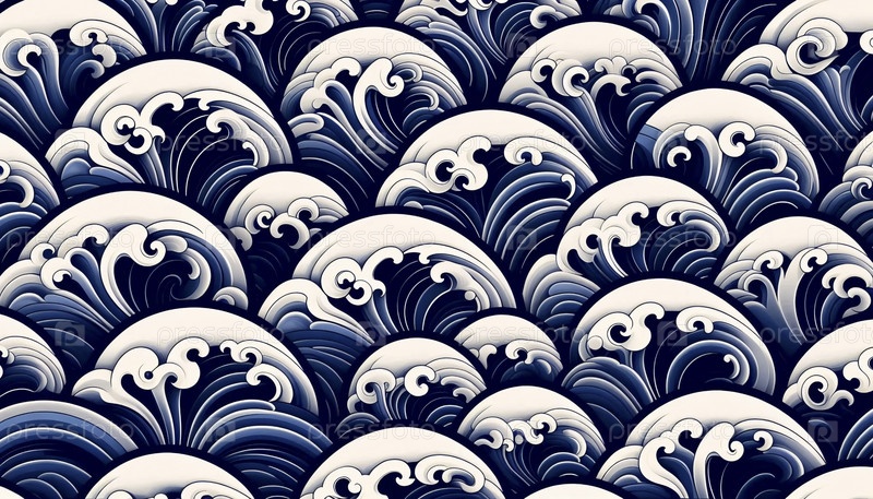 Японский волновой рисунок Азиатское искусство Бесшовный дизайн, Ai generated image