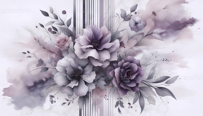 Лилац цветочный фиолетовый Абстрактные цвета Полосатый фон бумаги акварель мраморный шаблон, Ai generated image