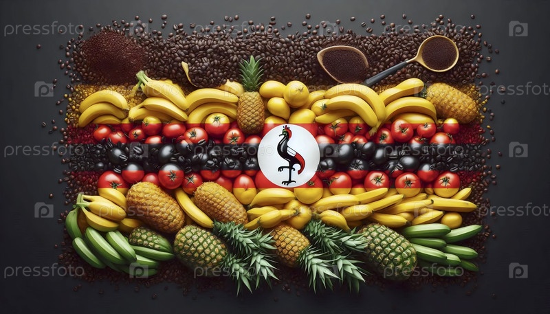 Угандийский флаг на оживленных уличных рынках и банановой торговле, A Ai generated image