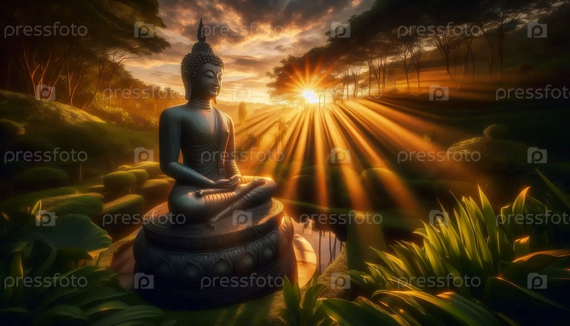 Лучи захода солнца Будды, Ai generated image