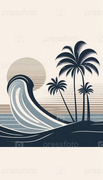 Винтажный дизайн плаката для путешествий на серфе, Ai generated image