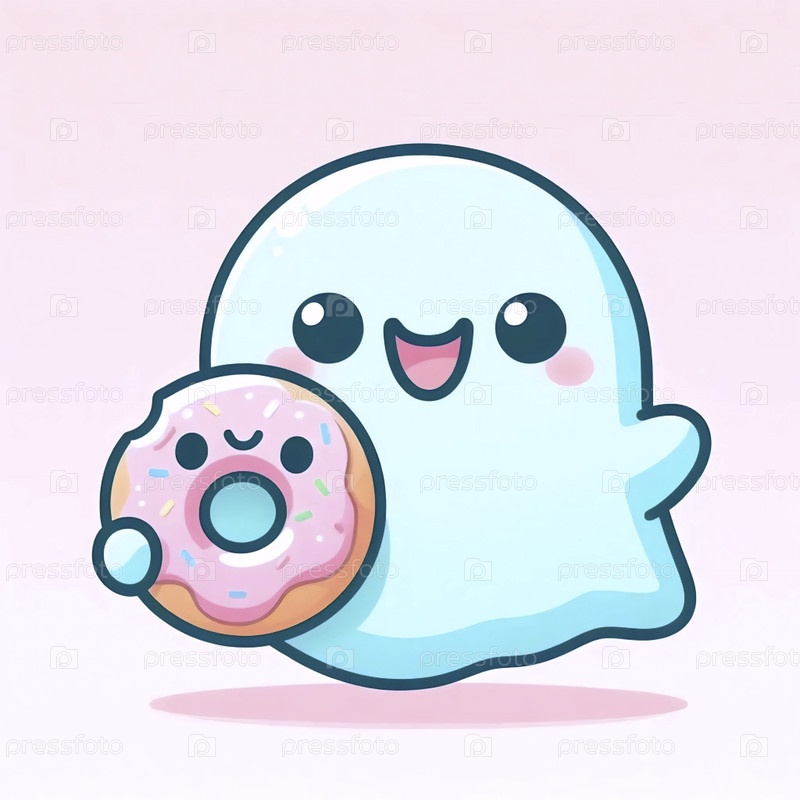 Призрак кавайи с художественным принтом пончиков, Ai generated image