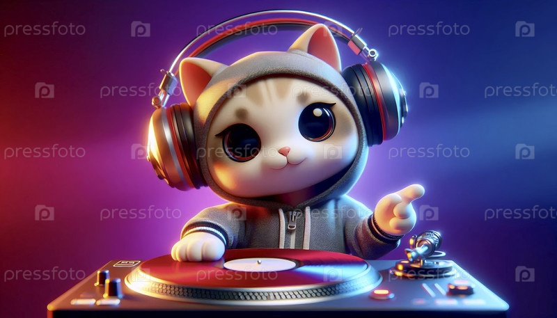 3D милый кот DJ стикер персонажа, Ai generated image A