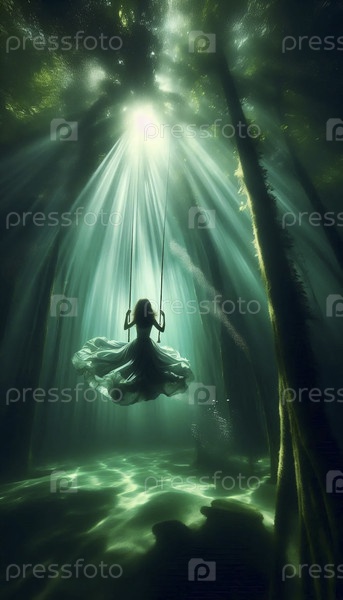 Ребенок, медленно качающийся в погруженном лесу, Ai generated image