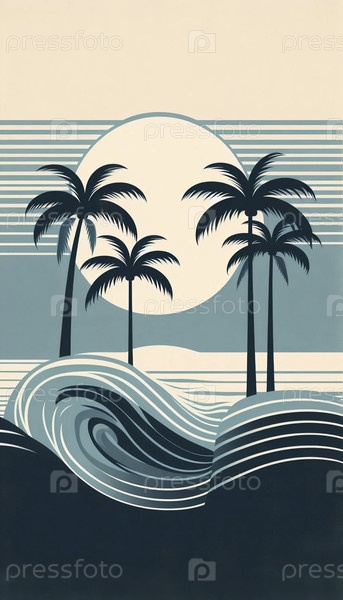 Винтажный дизайн плаката для путешествий на серфе, Ai generated image