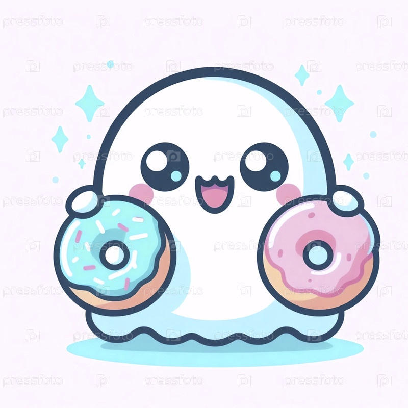 Призрак кавайи с художественным принтом пончиков, Ai generated image