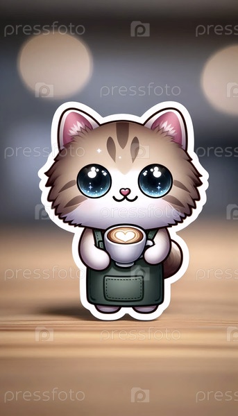 A kawaii cat barista with espresso sticker, Ай создал изображение