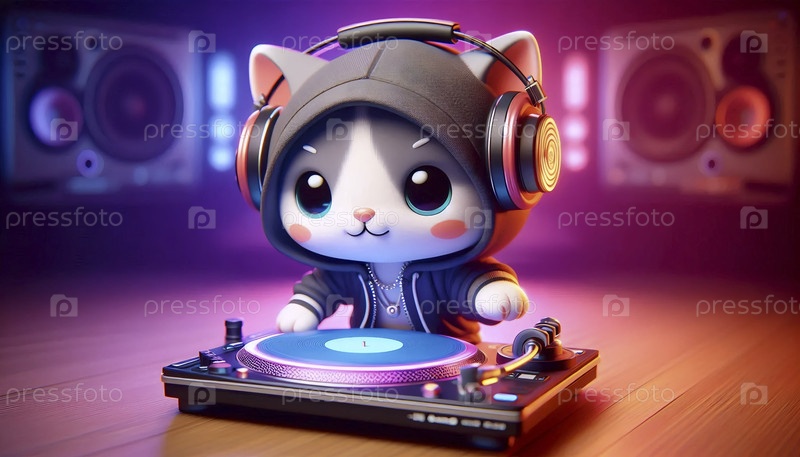 3D милый кот DJ стикер персонажа, Ai generated image A