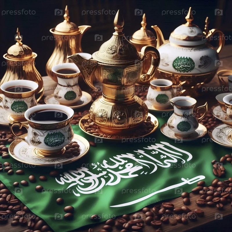 Саудовский флаг в традиционной церемонии кофе, Ai generated image